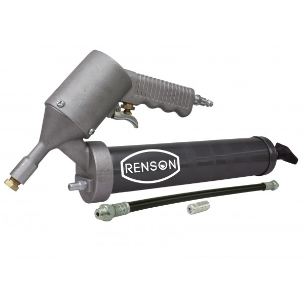 Pistol gresare pneumatic 40:1 la o mana cu furtun de presiune mare din cauciuc 300 mm, filet 1/8” si conector hidraulic pentru tuburi de 400 g sau vaselina vrac (500 g).